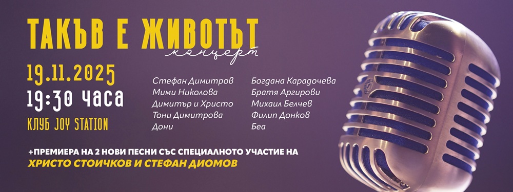 На 19 ноември София ще диша в ритъма на истинската  музика. Очакваме вечерта, в която клуб JOYSTATION ще отвори врати за „Такъв е животът“ – концерт, обърнал един обикновен ноемврийски ден в спомен за цял живот. Това няма да е просто поредно музикално събитие, а среща с душата на българската песен, белязана с почерка на един от най-големите ни композитори – Стефан Димитров.