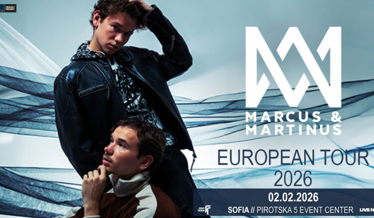 На 2 февруари Pirotska 5 Event Center ще предостави перфектната среда за динамичния и енергичен лайв на Marcus & Martinus, изпълнен с международни хитове, пулсиращи поп ритми и впечатляваща сценична продукция. Всички закупени до момента билети важат без презаверка, а билети продължават да се продават в мрежата на Ticket Station.