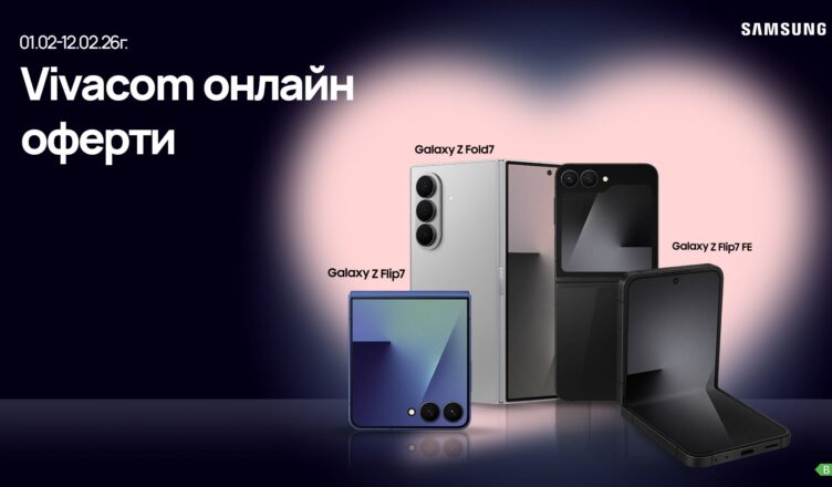 Независимо дали празнувате Свети Валентин или просто търсите повод да зарадвате себе си или любим човек, Vivacom стартира специални онлайн атрактивни отстъпки до 300 € | 586.75 лв. за смартфони Samsung в комбинация с план от телекома, валидни при сключване на 24-месечен договор за планове Unlimited. Сред предложенията са най-новите сгъваеми модели Samsung Galaxy Z Fold7, Galaxy Z Flip7 и Galaxy Z Flip7 FE, които съчетават иновативен дизайн, интелигентни функции и стил. Офертата е валидна само онлайн на vivacom.bg до 12 февруари и превръща избора на подарък в лесно, бързо и изгодно решение.